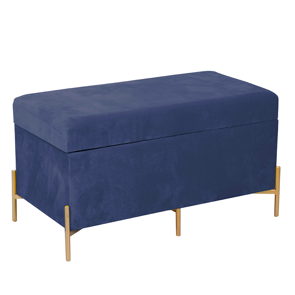 Die solide und geradlinige Struktur ruht auf eleganten goldenen Metallbeinen, die einen Hauch von Raffinesse verleihen und Robustheit und Stabilität garantieren. Die gepolsterte Sitzfläche, weich und einladend, macht diese Bank zu einer perfekten Ergänzung für einen Eingangsbereich, ein Schlafzimmer oder ein Wohnzimmer.