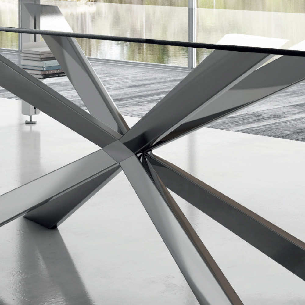Kleinere Reflexionsunregelmäßigkeiten auf der polierten Edelstahl-Finish-Basis sind auf manuelle Bearbeitung zurückzuführen. Hinweis : Das Tischgestell ist in vielen verschiedenen Farben erhältlich. Es kann zu Abweichungen von einigen Zentimetern bei den Maßen kommen