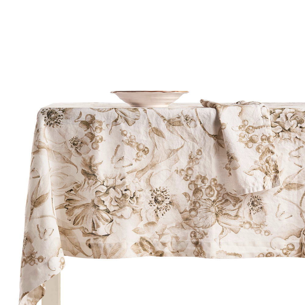 Diese bedruckte und gewaschene Tischdecke aus reinem Leinen ist ein wahres Meisterwerk an Eleganz und Stil. Ihr üppiges Blumenmuster verleiht jedem Tisch einen Hauch von Natur und Frische und macht sie ideal für jeden Anlass, vom formellen Abendessen bis zum entspannten Familienessen. Die Qualität von reinem Leinen, bekannt für seine Haltbarkeit und Widerstandsfähigkeit , sorgt dafür, dass diese Tischdecke jahrelang ein zentrales Element Ihres Tisches bleibt.