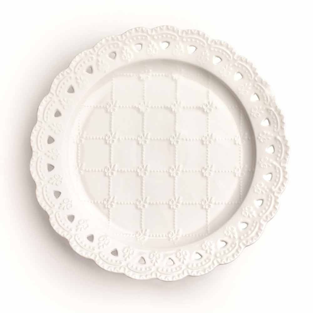 hochwertige Porzellanteller wurde geschaffen, um den Tisch mit raffinierter Schönheit und Romantik zu dekorieren. Aufgrund seines äußerst eleganten und raffinierten Charakters als Geschenk für eine Hochzeit verwendet, wird seine Besonderheit durch die ausgeprägte ästhetische Finesse verliehen, die durch die raffinierten Kanten mit