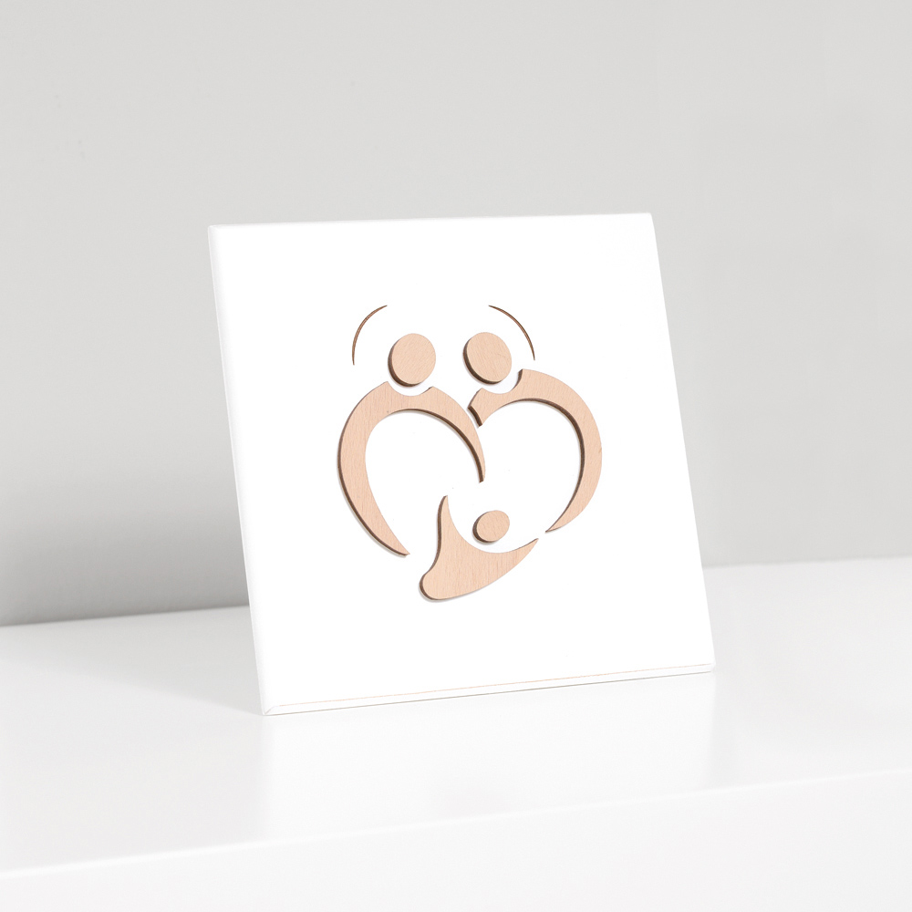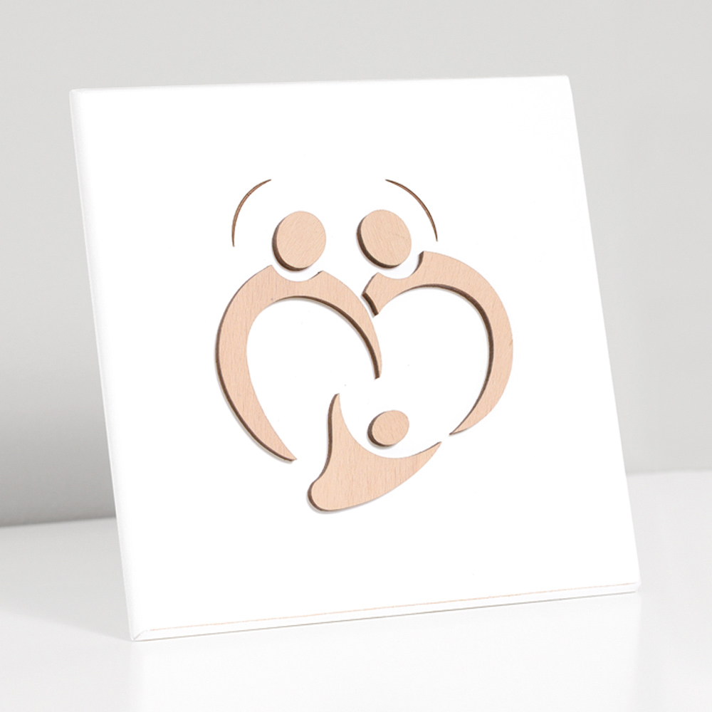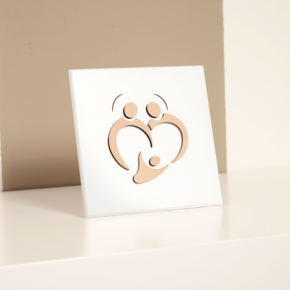 Dieses Gemälde ist das Ergebnis italienischer Handwerkskunst. Die Figuren werden von Hand gezeichnet und dann mit dem Licht des Laserstrahls bemalt, ohne jegliche Verschwendung und unter Berücksichtigung der Umwelt. Der minimalistische und essentielle Stil möchte nur die Süße hervorheben, die aus der Darstellung der Familie resultiert.