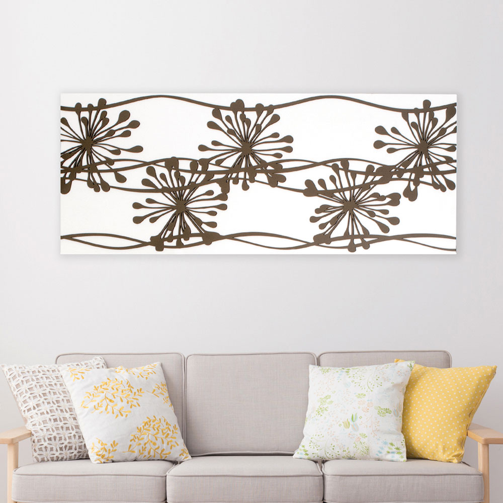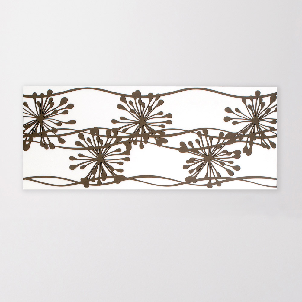 Abstraktes Paneel für elegante Dekoration, hergestellt aus weiß lackiertem Holz mit taubengrau lackierten Anemonendekorationen .