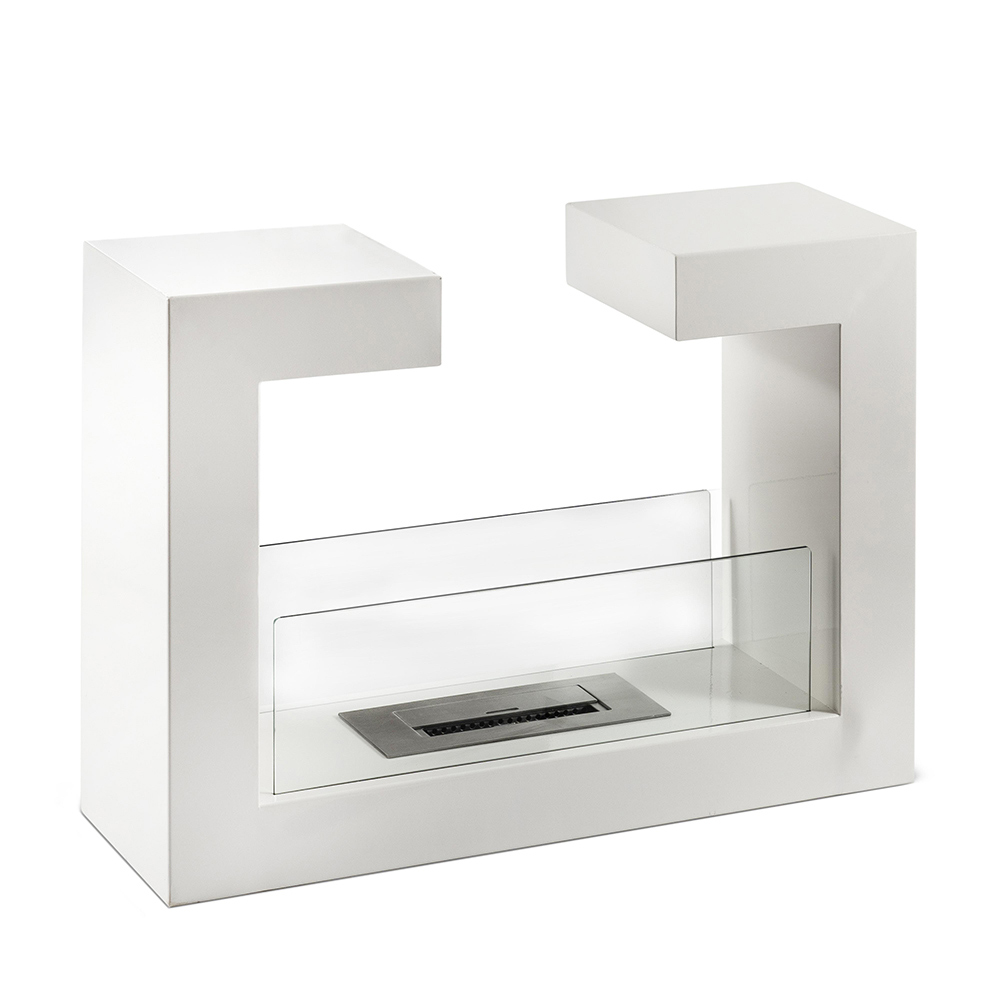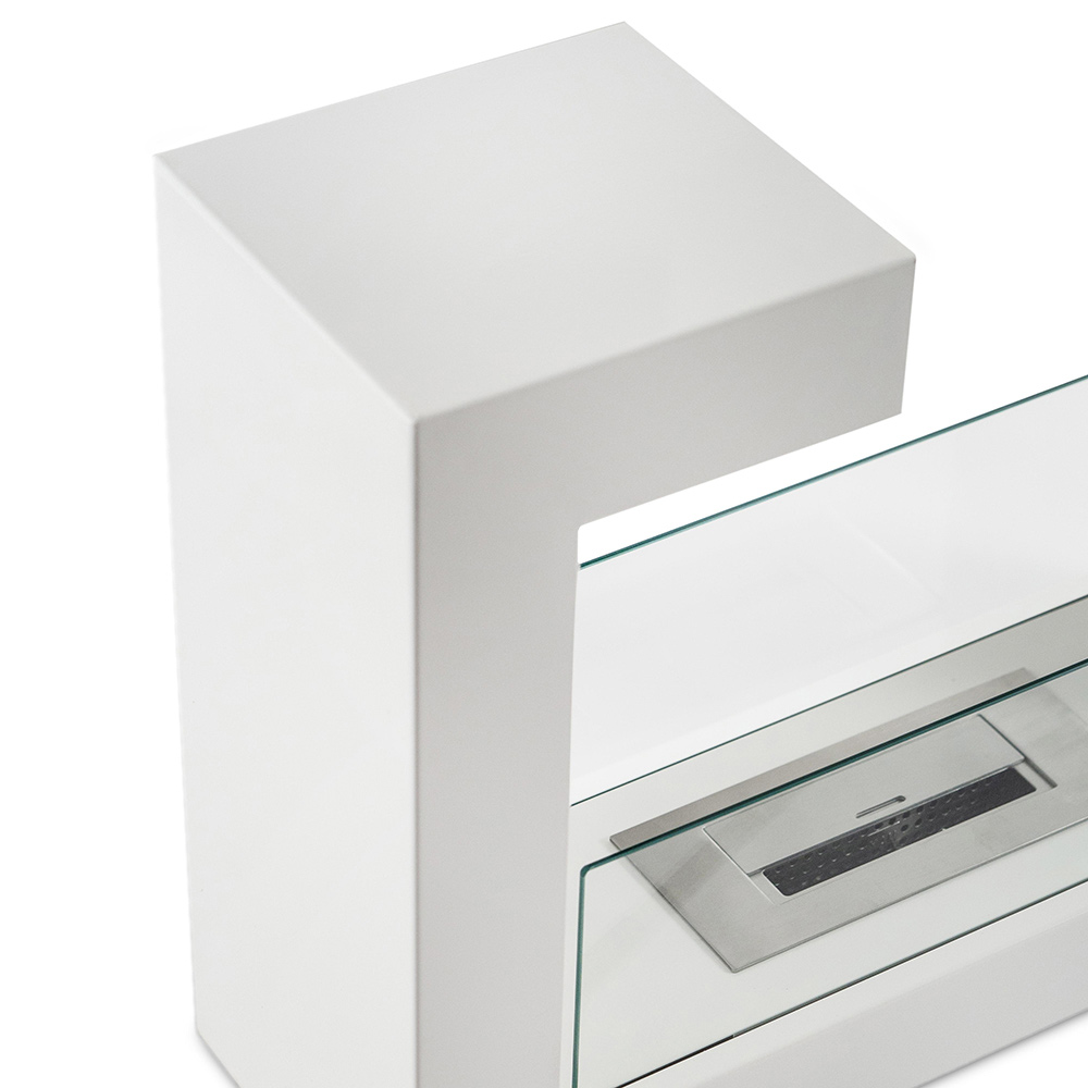 Bio-Bodenkamin aus weiß lackiertem Metall und gehärtetem Glas - Pelide