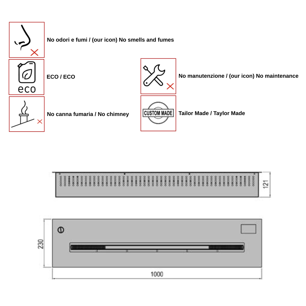 Aron 100 ist eine Brennkammer, die beliebig in unterschiedlichen Kaminen eingesetzt werden kann, ausgestattet mit einer Fernbedienung kann man selbst über eine Touchscreentastatur den Brenner manuell einstellen. Mit einer Dimension von 100 cm in der Länge können fantastische Effekte erziehlt werden. Die Viadurini Feuer Kollektion präsentiert einige unterschiedliche Brennkammern aus satinierten Edelstahl, eine davon ist Aron 100. Für längere Kaminflächen können auch mehrere Brennkammern eingesetzt werden! Die Brennkammer selbst ist für eine seperate Steuerung der Flamme per Fernbedienung regulierbar. Auch die An und Ausschaltung kann über die Fernbedienung eingestellt werden. Wir bieten absoluten Komfort, Qualität und Design!