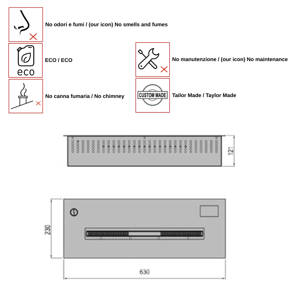 Nebenbemerkung: die Brennkammer ist auch in Metall individuell nach Maß verfügbar, stellen Sie uns dazu Ihre persönliche Anfrage und wir machen Ihnen ein unverbindliches Angebot an clienti@viadurini.it