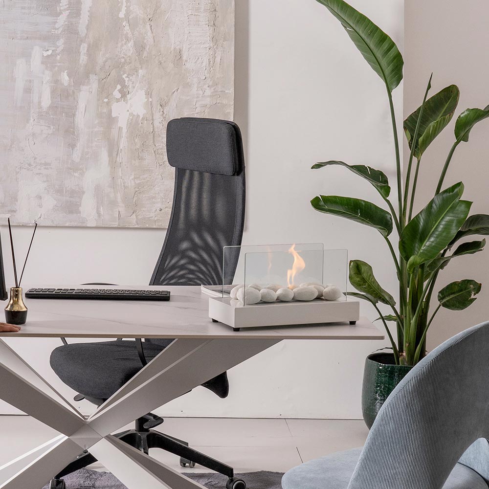 Bioethanol-Tischkamin mit einzigartigem Design. Silber ist ein exklusives Stück, das in Ihrem Zuhause nicht fehlen darf.