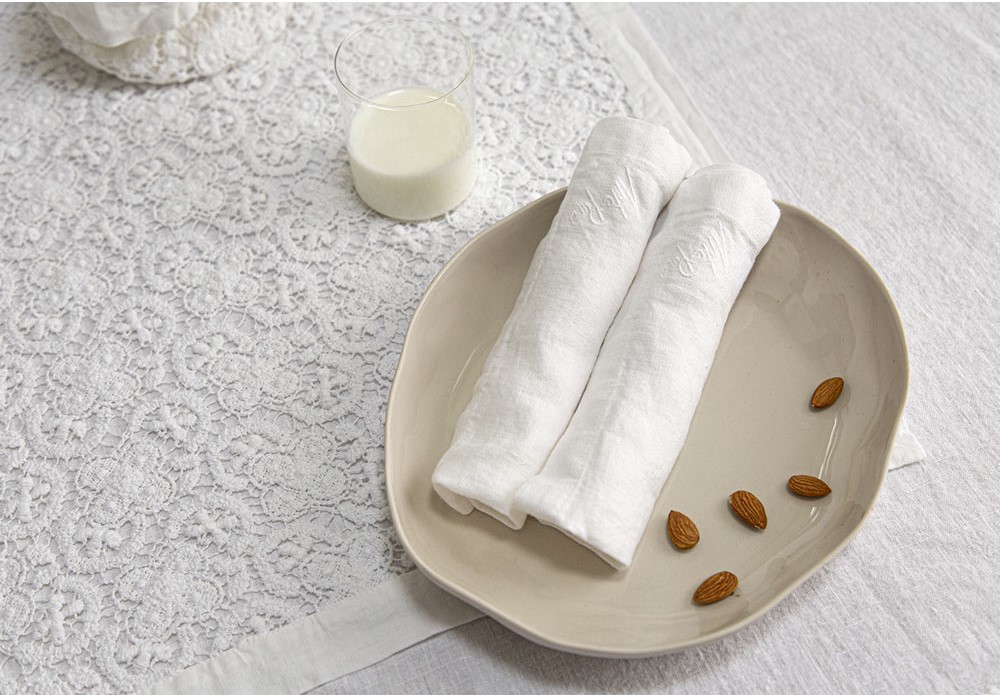 Beginnen wir mit der Basis: der Tischdecke. Leinen, der Hauptstoff der Saison, erinnert an die Leichtigkeit und Frische des Frühlings und bietet sich als leere Leinwand an, auf der wir unsere Landschaft malen können. Von Pastelltönen für alle, die elegante Schlichtheit lieben, bis hin zu leuchtenden Farben wie Zitronengelb oder Orange – für Freigeister, die sich an die Farbe wagen – jede Wahl spiegelt eine Persönlichkeit wider.
