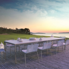 Und für ein unvergessliches und magisches Frühstück, Mittag- oder Abendessen im Garten bieten wir Ihnen eine große Auswahl an Tischen mit Glas oder Keramikplatte, rechteckig, rund oder oval, kombiniert mit Stühlen, die auf das Design Ihres Lieblingstisches abgestimmt sind.