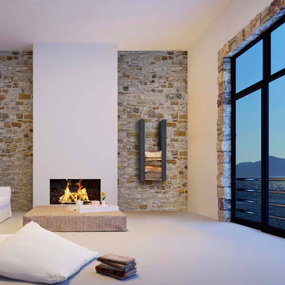 Brennholzhalter für Kamin aus hochwertigem ungiftigem pulverbeschichtetem Stahl.
