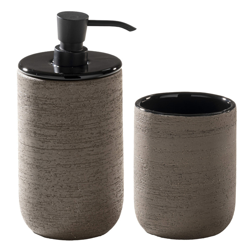 feuerfestem Ton und dunkler Erde mit glänzend schwarz emailliertem Innenraum.