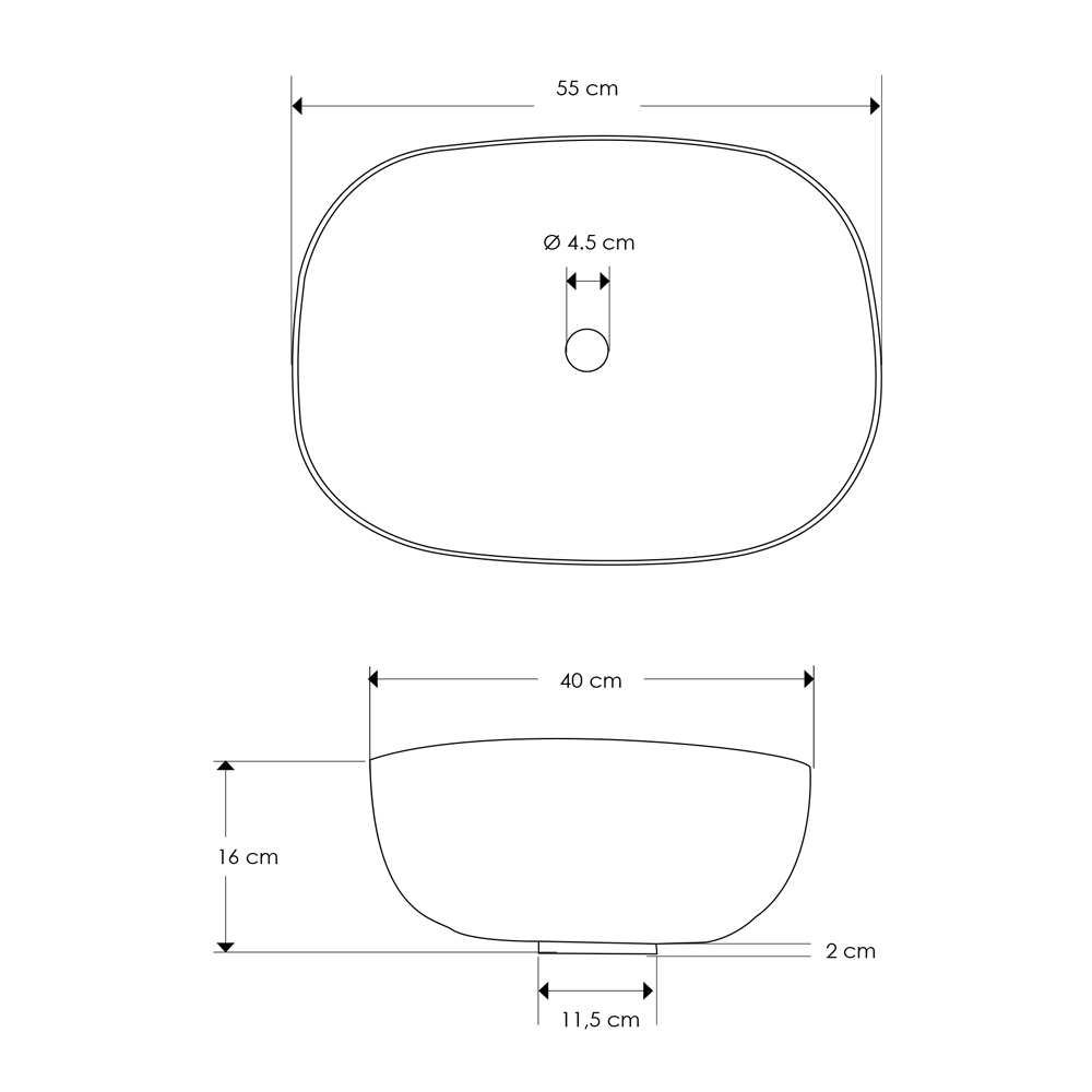 - Waschbecken - L 55 x P 40 x H 16 cm;
