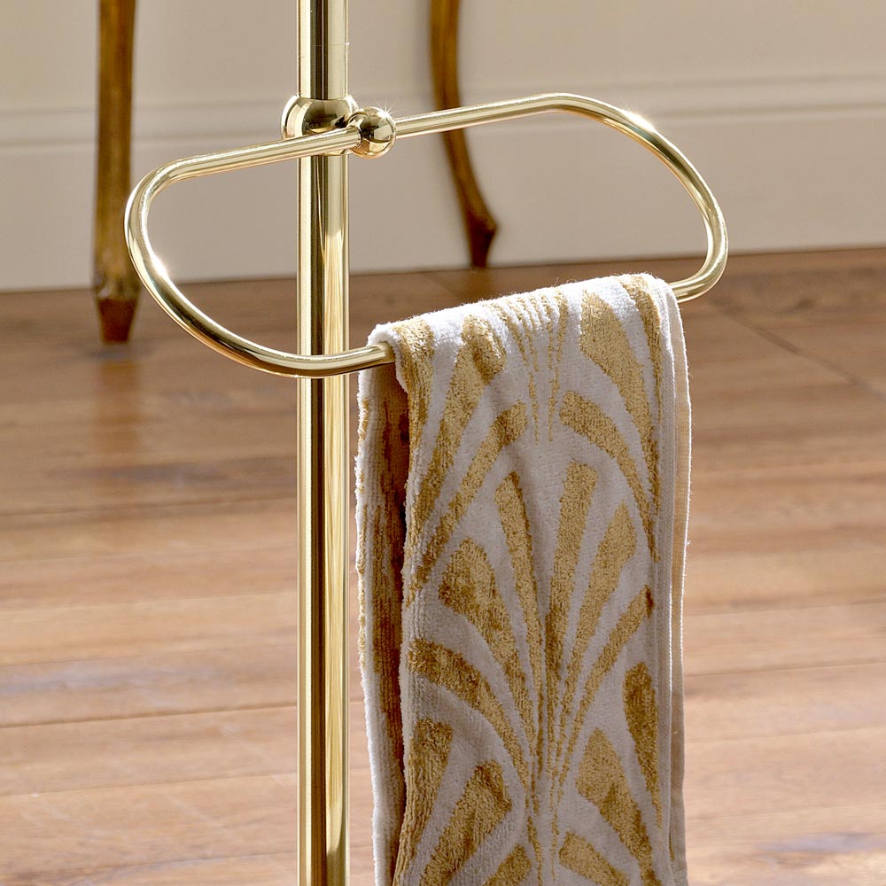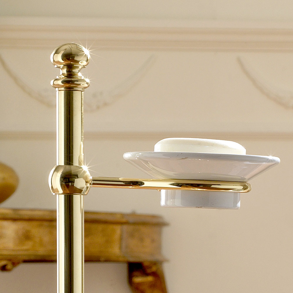 Bodenhandtuchhalter mit Seifenschale aus Messing und Keramik, hergestellt in Italien, Rouen.