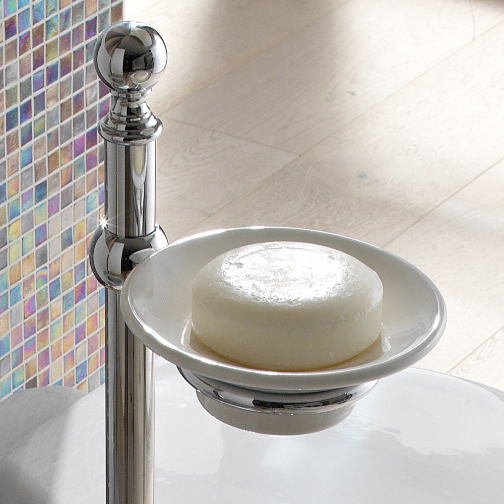 Handgefertigt in Italien mit hochwertigen Materialien. Die Struktur besteht aus Messing, die Seifenschale aus Keramik. Optional ist ein praktischer WC-Bürstenhalter, ebenfalls aus Keramik, erhältlich.