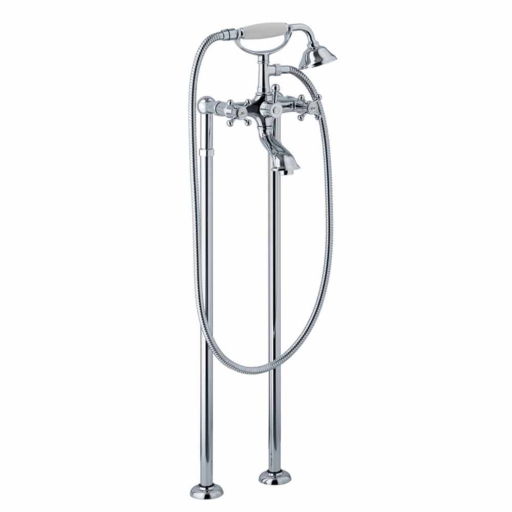 Bademischer auf Bodensäulen mit Messingdusche und 1500 mm flexiblem Schlauch.