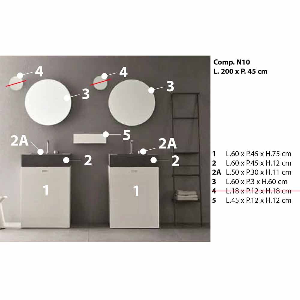 Badmöbel Zusammensetzung mit einem modernen Design mit doppelter Säule von Made in Italy Waschbecken.