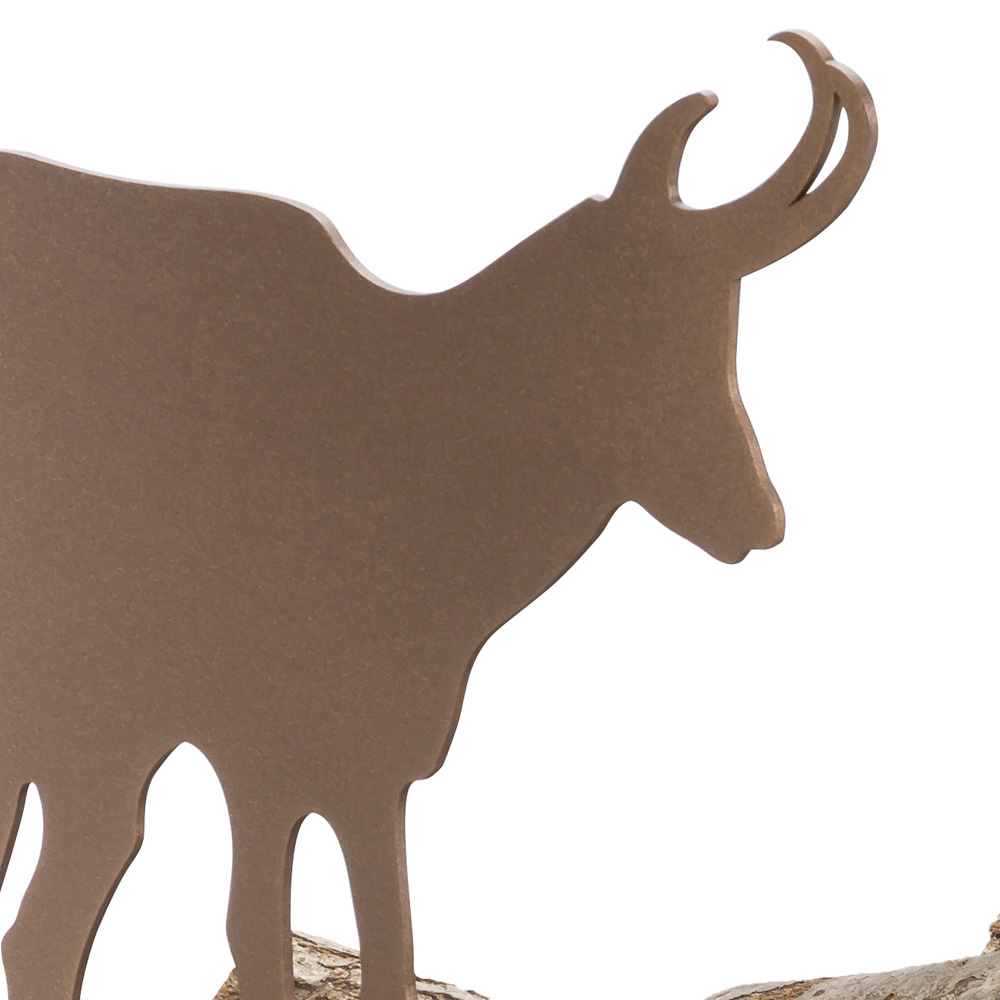 Modernes Design Holzhalter aus braunem Stahl mit Steinbock-Dekoration mit Zubehör, hergestellt in Italien.