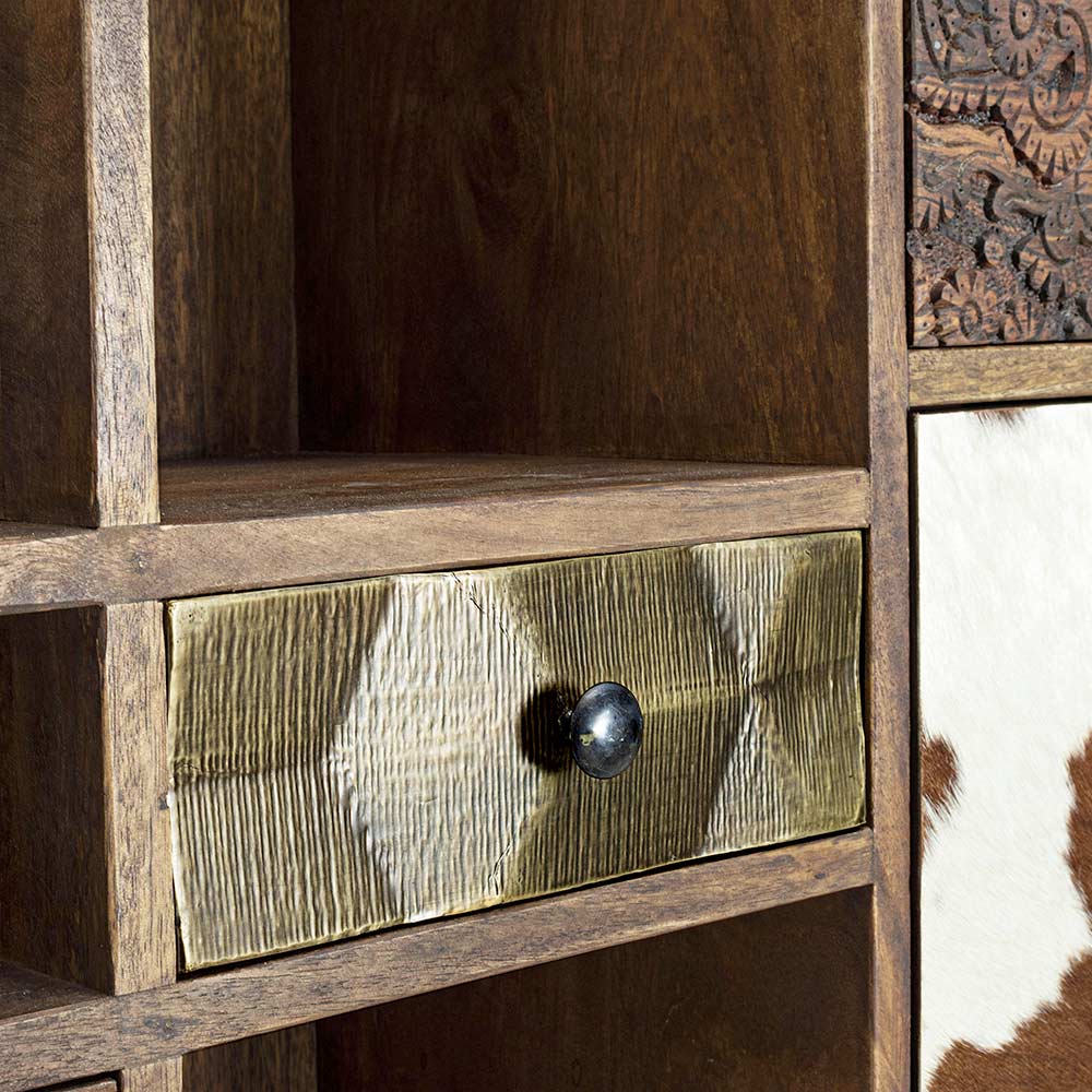 Bücherregal aus Mangoholz und recycelte Schubladen mit Homemotion-Dekorationen - Auriel
