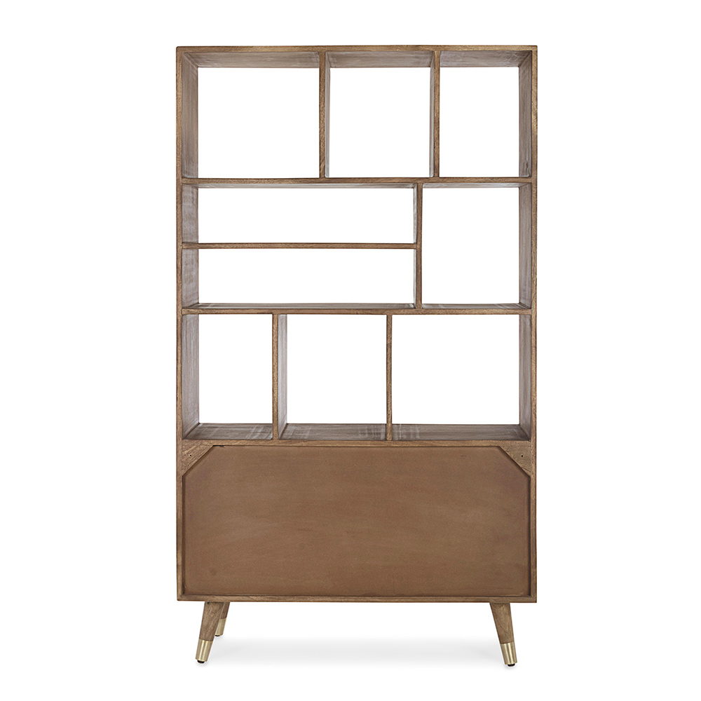 Dieses freistehende Bücherregal verfügt über eine Mangoholzstruktur mit MDF-Rückseite.