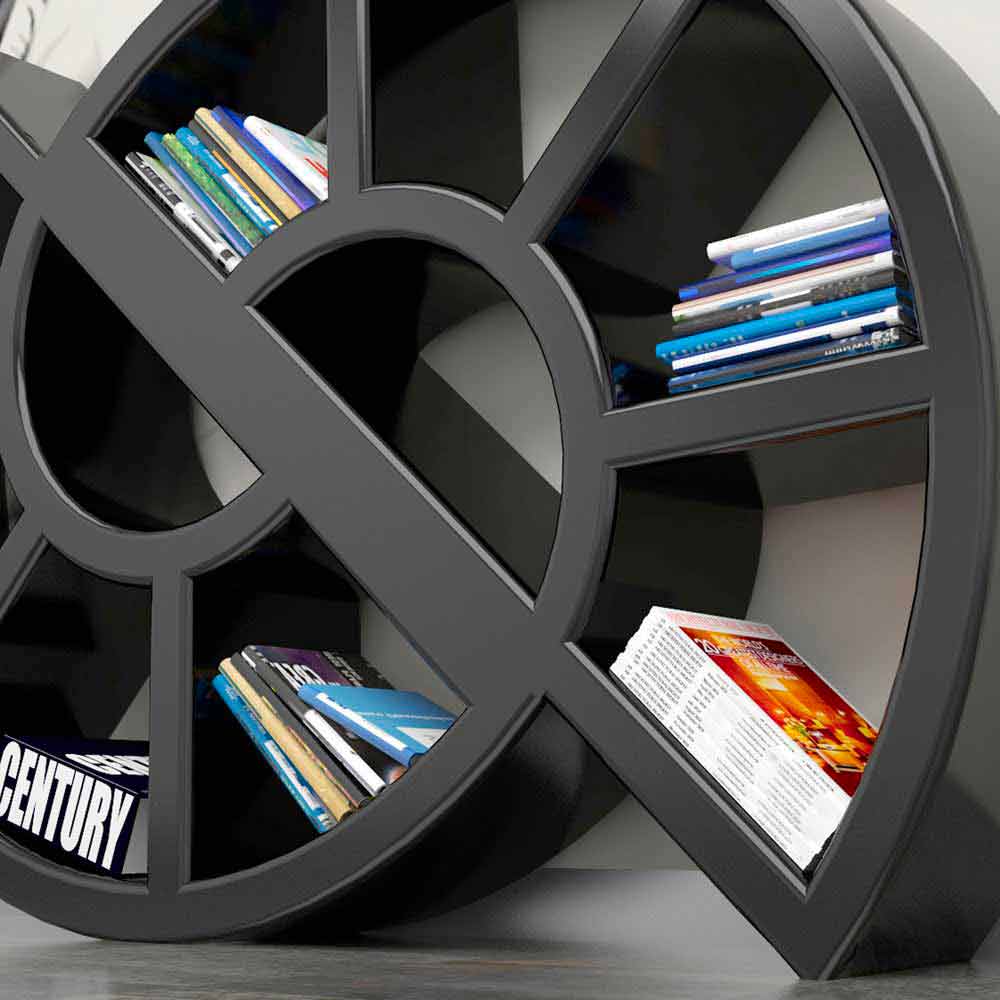 Dieses Design-Bücherregal nutzt Funktionalität und Schönheit voll aus, mit einer glänzend lackierten Oberfläche in jeder Art von Farbe wird es das vorherrschende und unbestrittene Möbelstück sein.