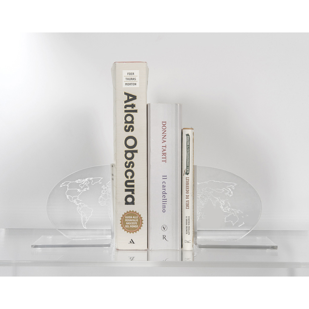 Buchstützen aus transparentem Plexiglas, Kartendesign 2 Stück made in Italy.