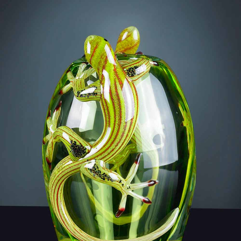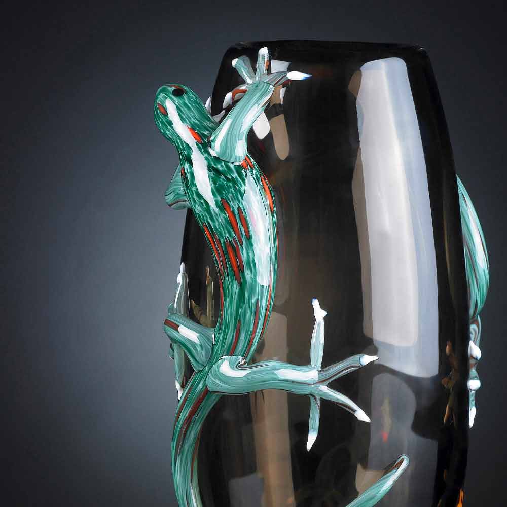 Buntglasvase für den Innenbereich mit Geckos Handmade in Italy - Geco