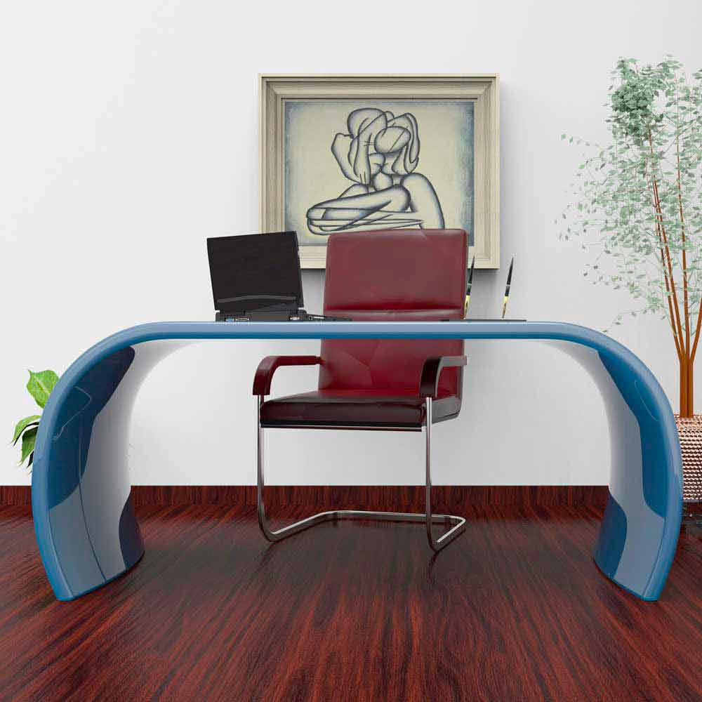 Managertisch. Material: feste Oberfläche; Eine geschwungene Form, fast wie eine Welle, wird Teil des Arbeitsalltags. Dieser Schreibtisch aus Solid Surface durchbricht dank seiner geschwungenen Form die Monotomie des Büros und sorgt für eine moderne und freundliche Umgebung. Durch seine leuchtenden Farben passt es gut zu jeder Art von Umgebung und verleiht ihr eine geschmackvolle Einrichtung. Außen matt lackiert, innen glänzend lackiert. Erhältlich in verschiedenen Farbvarianten.