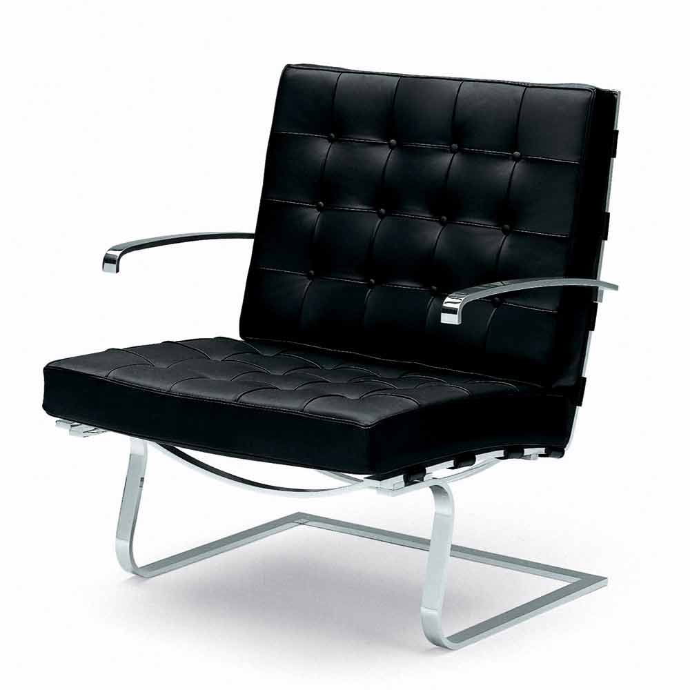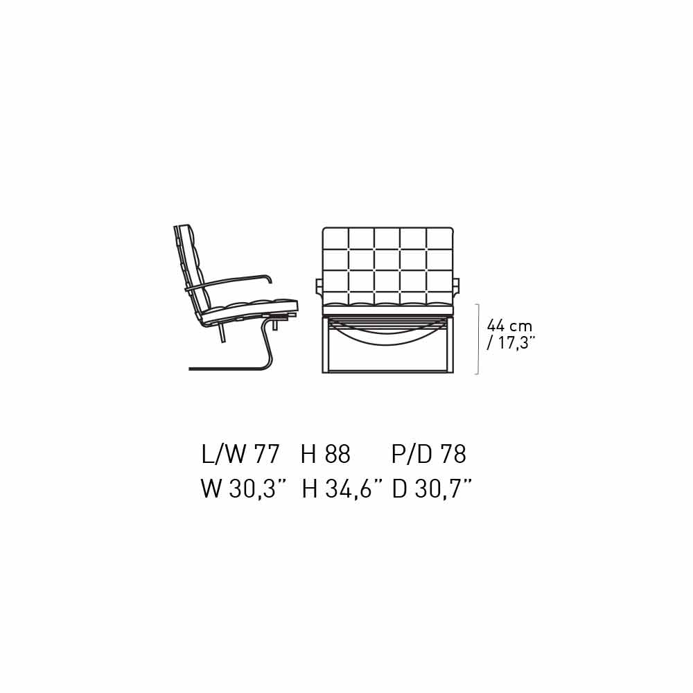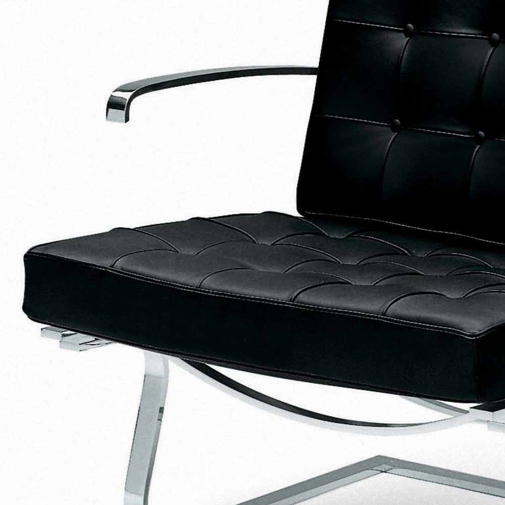 Gestell aus verchromtem Stahl , Kissen aus Polyurethanschaum und Polyesterfaserfutter, Trageriemen aus Leder und Außenbezug aus Leder, vollständig