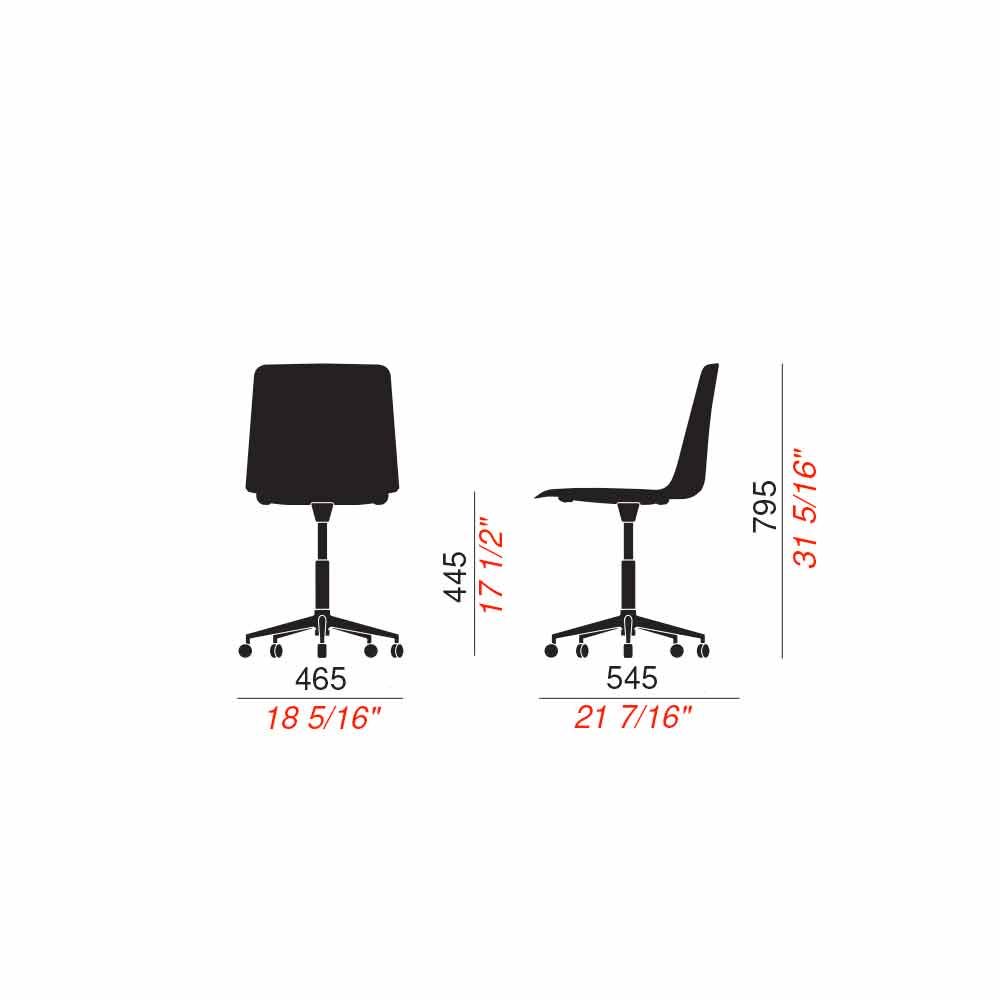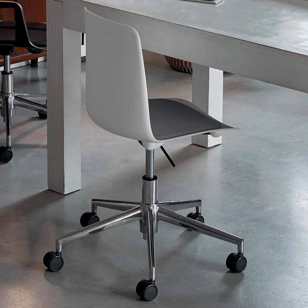 Charita besteht aus einem Polypropylensitz , der in 7 verschiedenen Farben erhältlich ist, und einer polierten Aluminiumstruktur , die auch mit einer drehbaren Basis für mehr Komfort und mehr Funktionalität ausgestattet ist.
