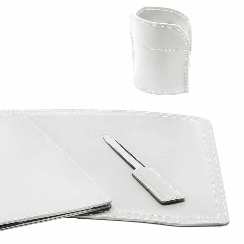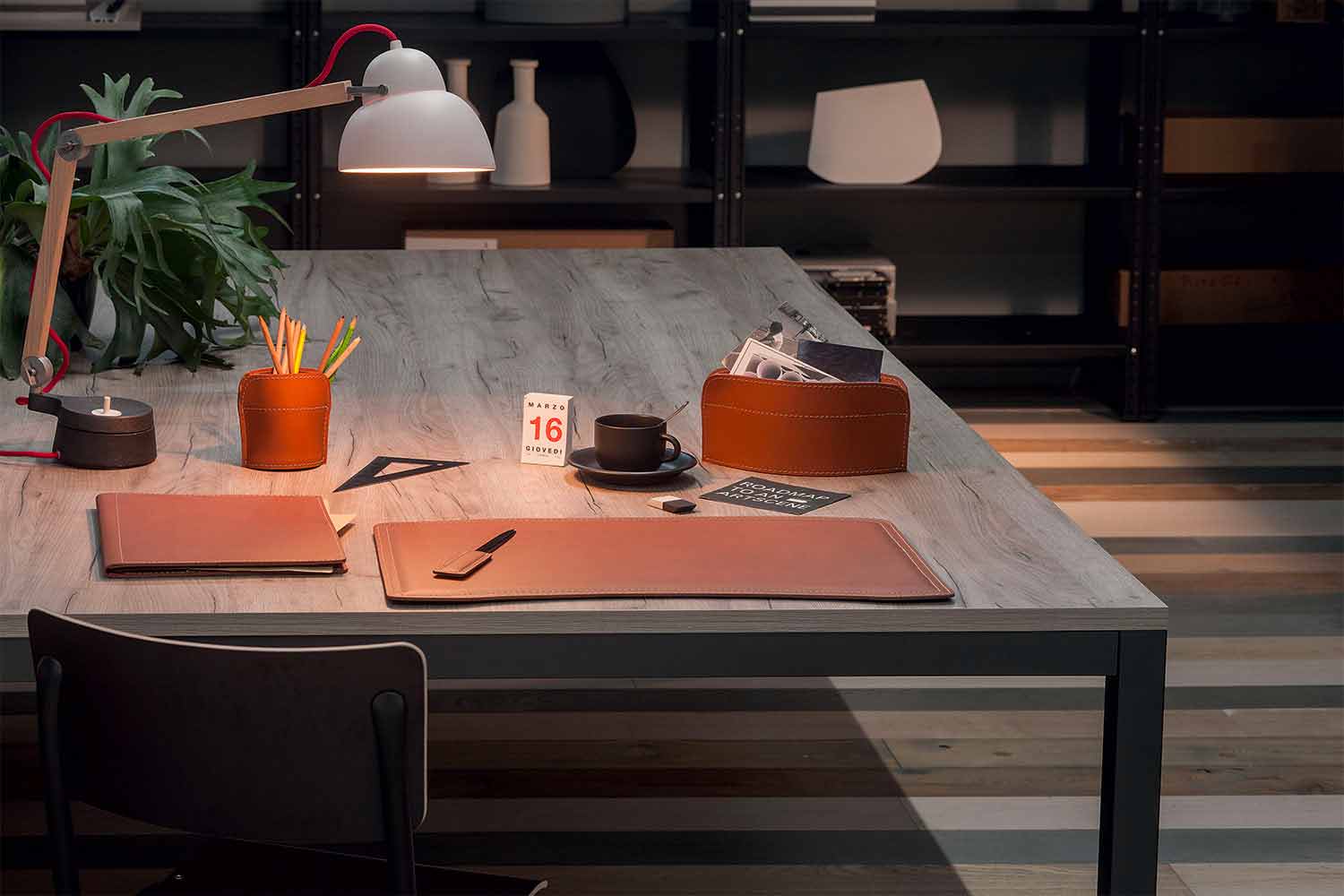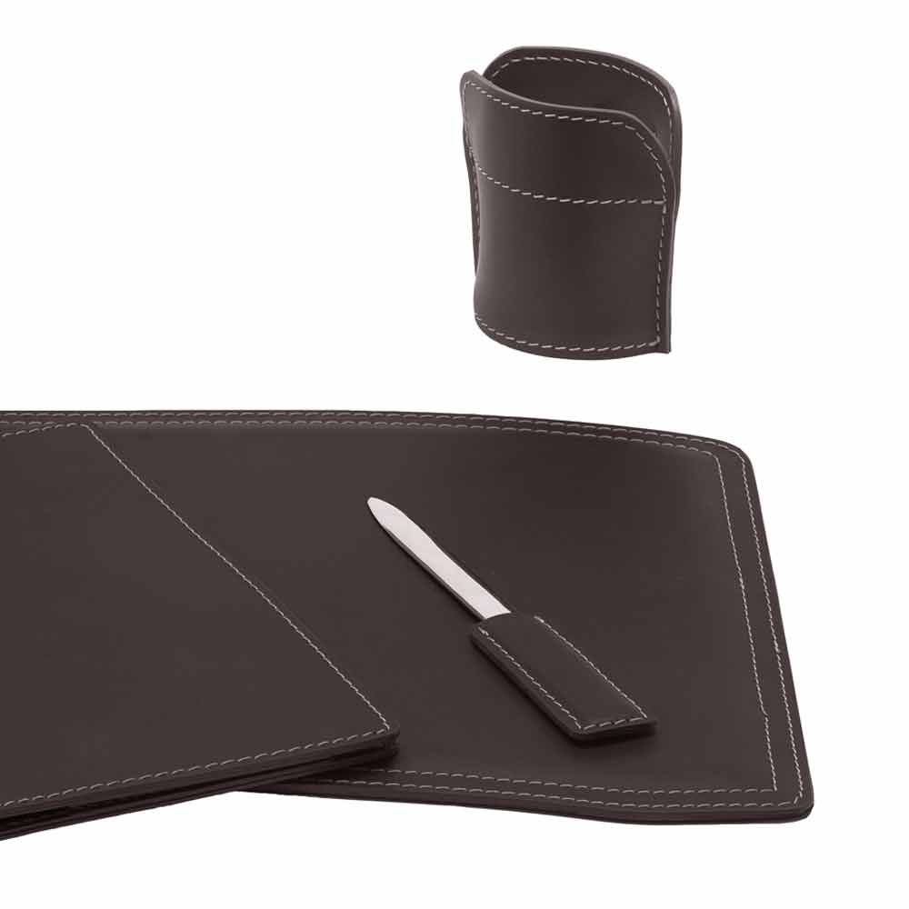 Schreibtischzubehör aus gebundenem Leder, Set bestehend aus 5 Teilen, Made in Italy Brando