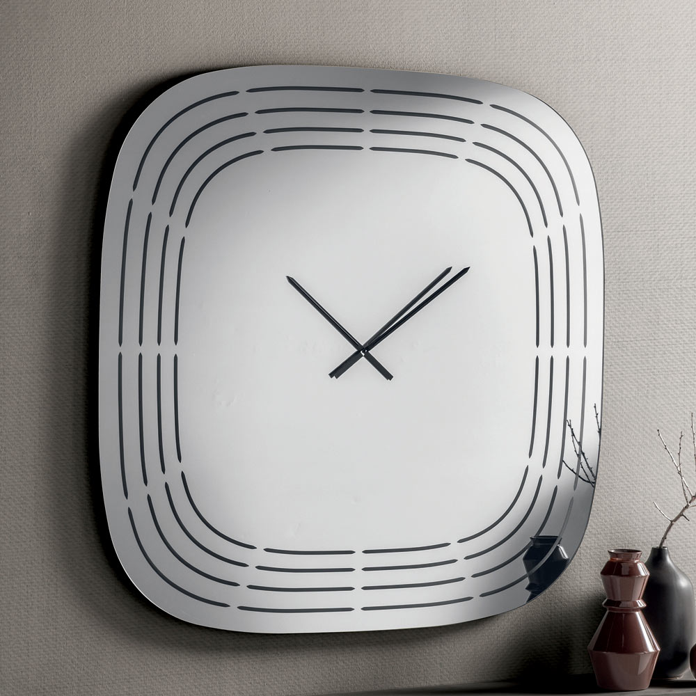 Cesira Spiegelglas-Wanduhr mit Lasergravuren, hergestellt in Italien