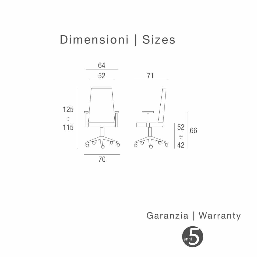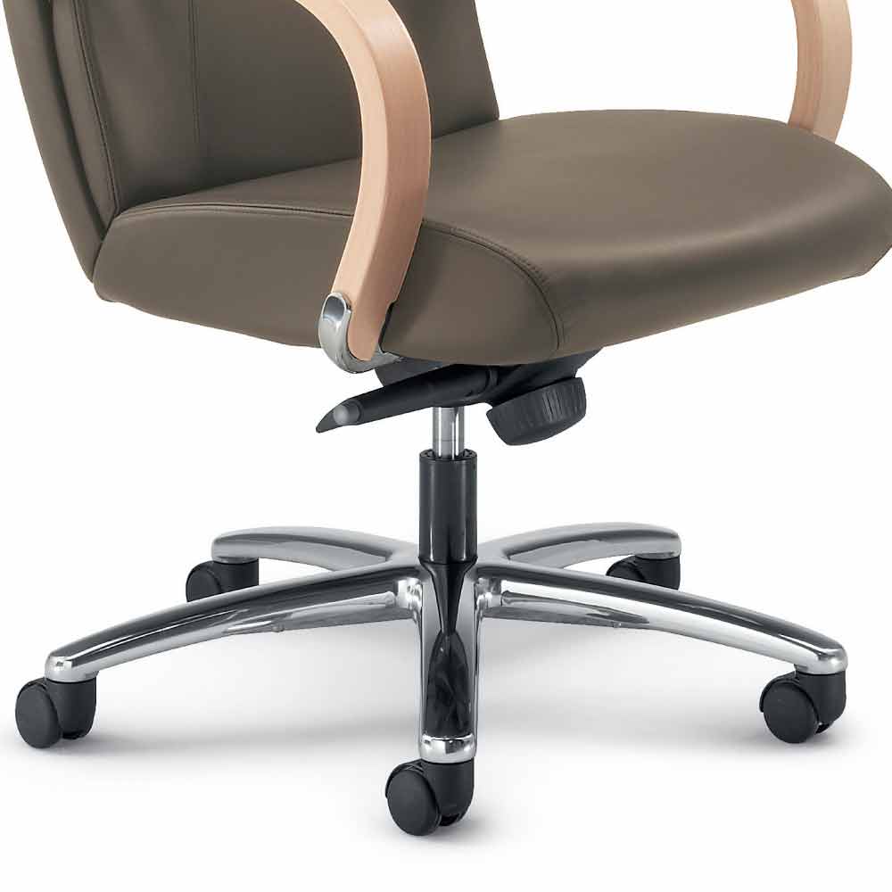 Der 5-Arm Fußkreuz istaus glänzendem Aluminium hergestellt und der Stuhl hat selbst-bremsende Rollen Ø 50 mm.