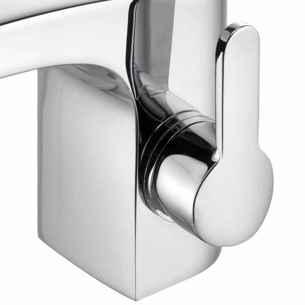 Seine Linien zeichnen sich durch rechte Winkel und geometrische Formen aus, die in Kombination mit den wunderbaren Kurven ein klassisches und gleichzeitig modernes Design zum Leben erwecken, das sich perfekt in die unterschiedlichsten Möbelstile einfügt. Dank der eleganten Chromoberfläche kann dieses einzigartige Möbelstück einen Hauch von faszinierendem Licht verleihen und Ihr Badezimmer mit Persönlichkeit und Charakter füllen.