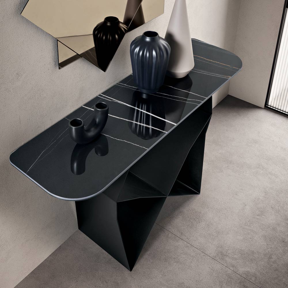 Ein eleganter, in Italien gefertigter Designer-Konsolentisch , ideal für die stilvolle Einrichtung von Eingangsbereich , Wohnzimmer oder Fluren. Sein modernes Design vereint optische Leichtigkeit mit einer starken Ästhetik und verwandelt ein funktionales Element in ein wahres Dekorationsobjekt.