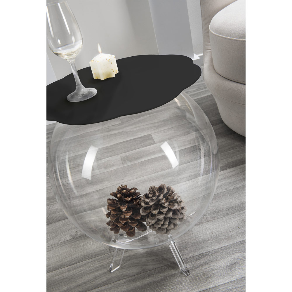 Couchtisch / runder schwarzer Biffy Container, modernes Design made in Italy Plexiglas Couchtisch / Container mit einer kugelförmigen Struktur, die als Vase für Blumenarrangements, als Aquarium, als Behälter für Spielzeug oder als Wäschekorb verwendet werden kann. Die Transparenz des BIFFY-Tisches macht ihn zu einem Stück mit einem unaufdringlichen Design, das leicht zu Hause angebracht werden kann. Das Regal besteht aus 100% PMMA Plexiglas aus reinem schwarzen Polymer. Plexiglas ist stoßfest, nicht verformbar, unveränderbar und wärmeisolierend. Die Helligkeit und Helligkeit werden über die Zeit konstant und unverändert beibehalten. Das PMMA Plexiglas aus reinem Polymer ist ungiftig, hypoallergen, geruchlos und antibakteriell. 100% recycelbar. Entworfen, entworfen und hergestellt in Italien, mit italienischen Materialien.