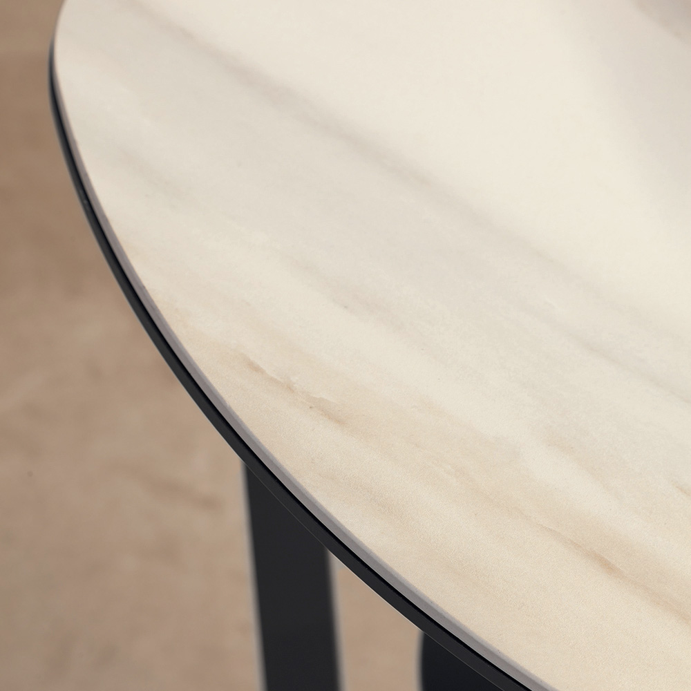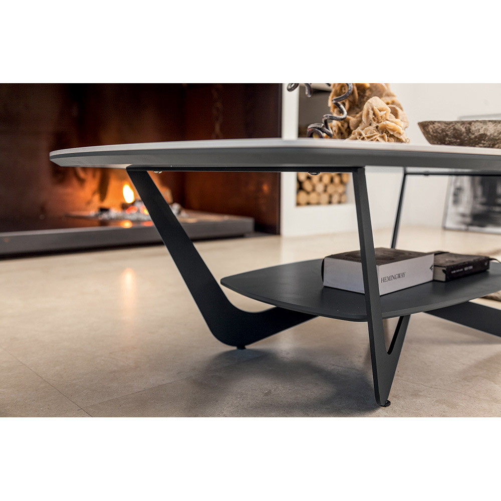 Couchtisch aus Metall und glänzender Keramikplatte mit Aufbewahrung, hergestellt in Italien.
