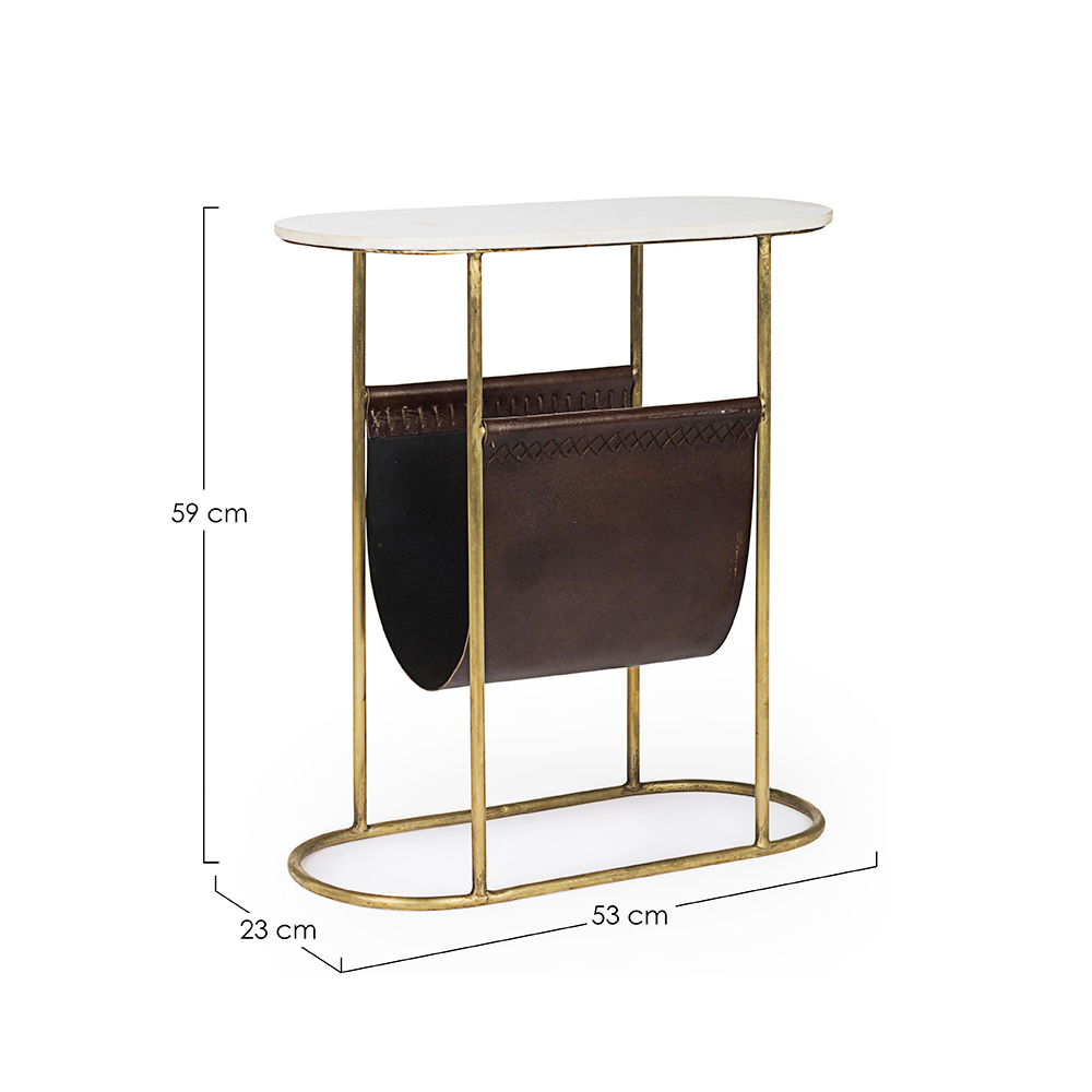 Couchtisch aus Stahl und Marmor mit Zeitungsständer aus Leder - Aretone