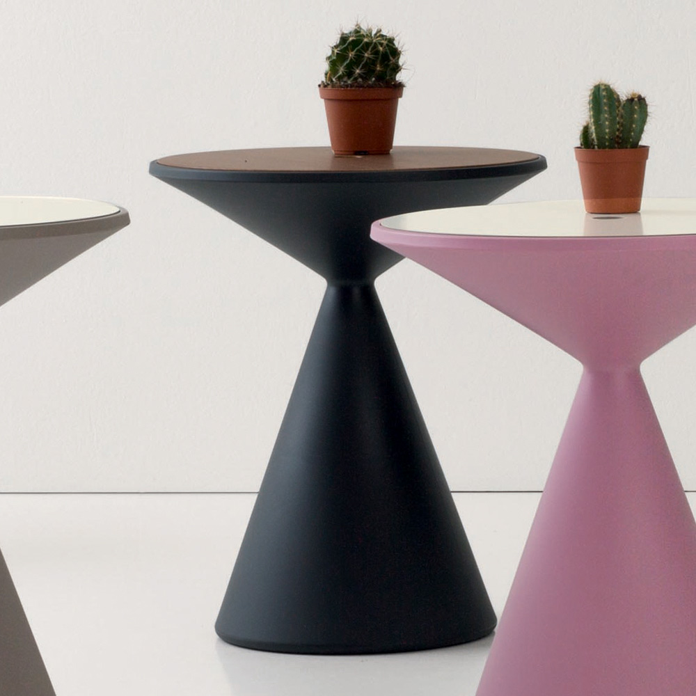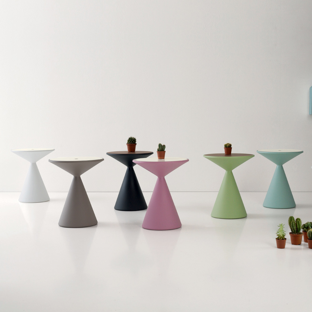 Runder Couchtisch aus farbigem Polyethylen mit Innenbehälter made in Italy.