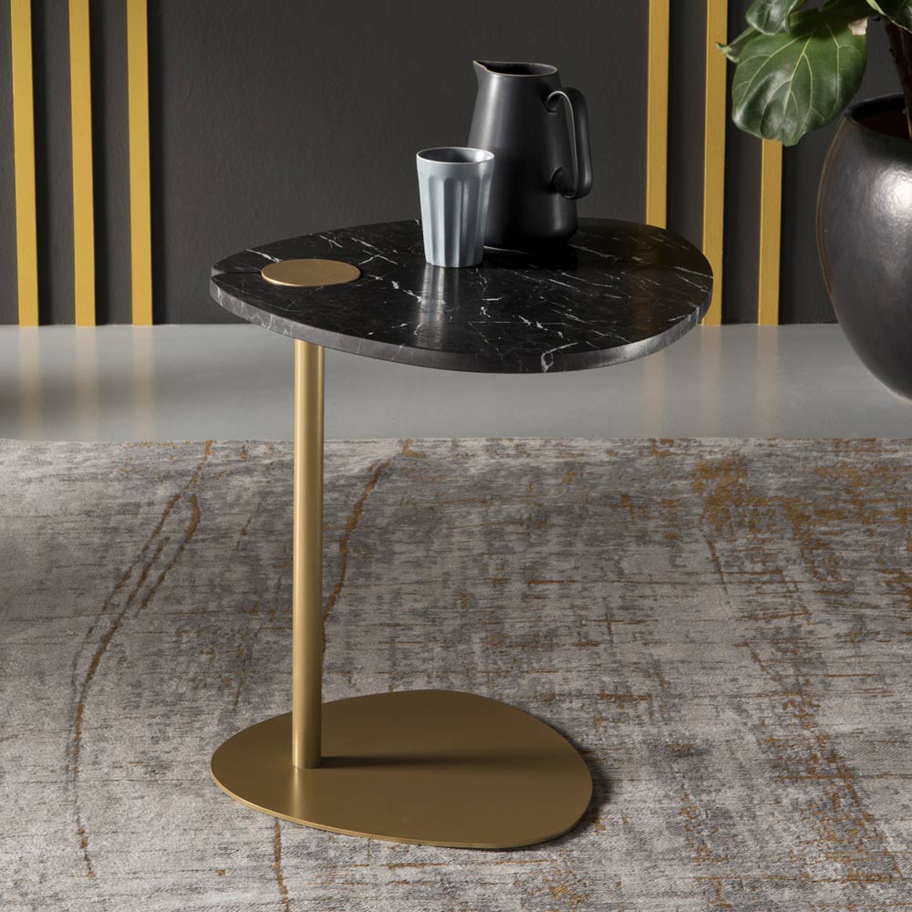 Sofa-Beistelltisch für das Wohnzimmer ist von den unregelmäßigen und natürlichen Formen der vom Wasser geglätteten Kieselsteine inspiriert. Die besonderen und interessanten Linien unterscheiden sich, um den Raum aufzuwerten und ihm einen Hauch von Raffinesse zu verleihen. Das