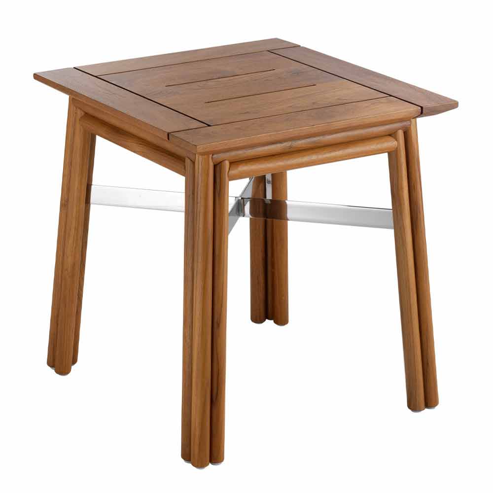 Quadratischer Design-Beistelltisch im Freien aus schwarzem oder natürlichem Holz, hergestellt in Italien.