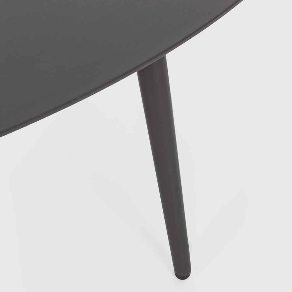 Ovaler Esstisch aus anthrazit lackiertem Aluminium.