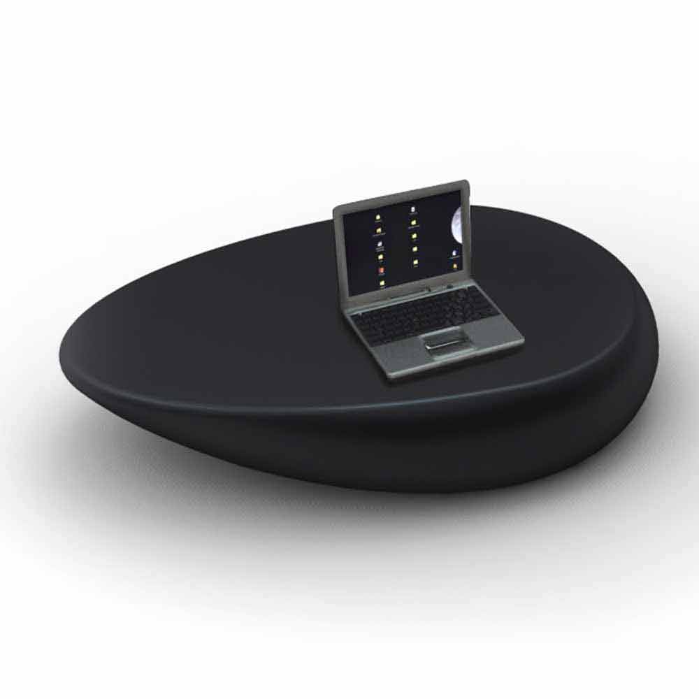 Monolithischer Couchtisch mit abgerundeten Formen.
