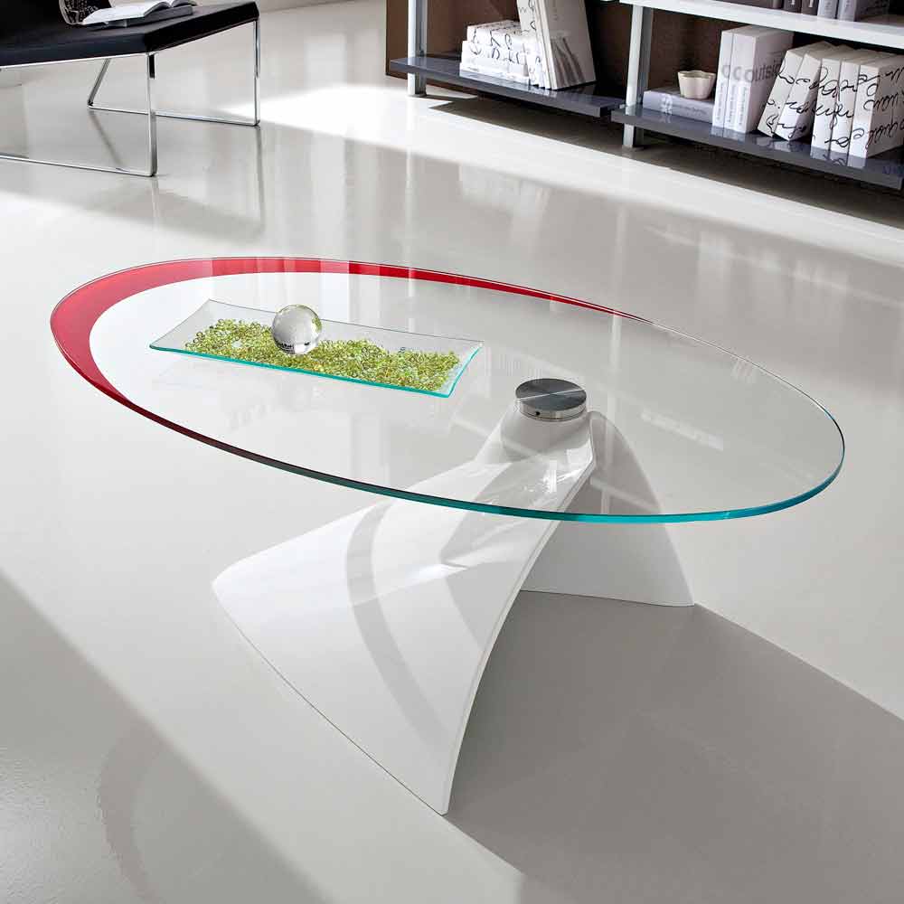 äußerst fesselnde Note mit sich bringt. Die zeitlose Eleganz des Glases verbindet sich mit der raffinierten Note des lackierten Marmorsockels in glänzendem Finish, um einen einzigartigen Couchtisch zum Leben zu erwecken, der durch den anschließenden wunderbaren Siebdruck auf der Oberseite noch einzigartiger wird seine Linien und Formen. Das Endergebnis wird ein