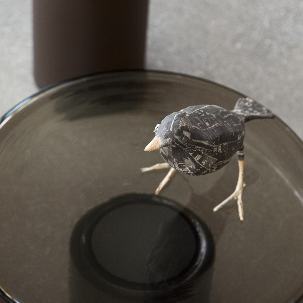 - Platte aus glattem, transparentem Rauchglas, Basis aus geprägtem Graphit