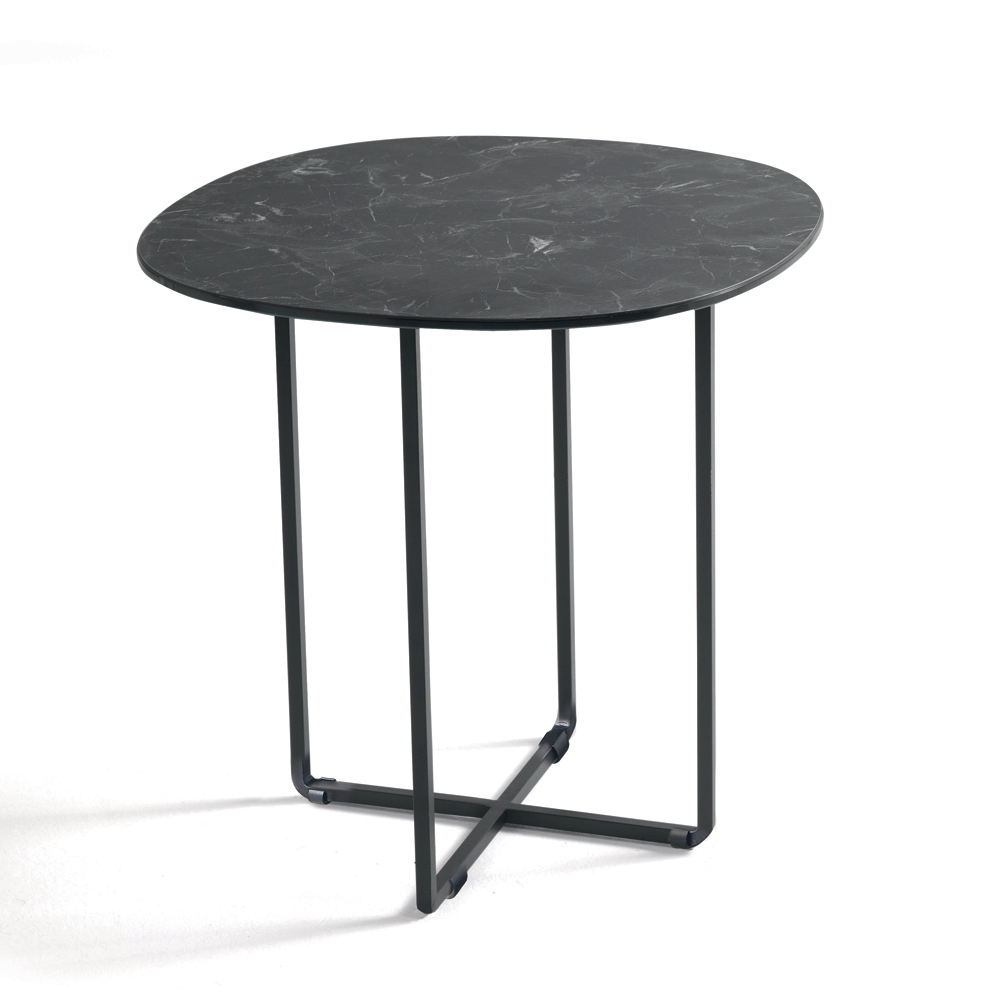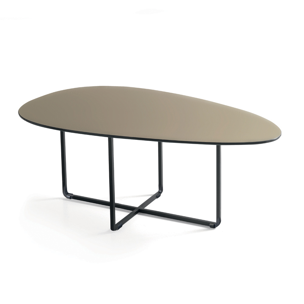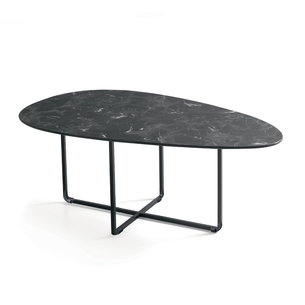 Das Gestell aus lackiertem Metall ist robust und wirkt dennoch optisch leicht. Es fügt sich harmonisch in moderne Räume ein. Die klaren, wohlproportionierten Formen verleihen dem Tisch eine elegante und zeitlose Ästhetik, die ihn für verschiedenste Einrichtungsstile perfekt geeignet macht.