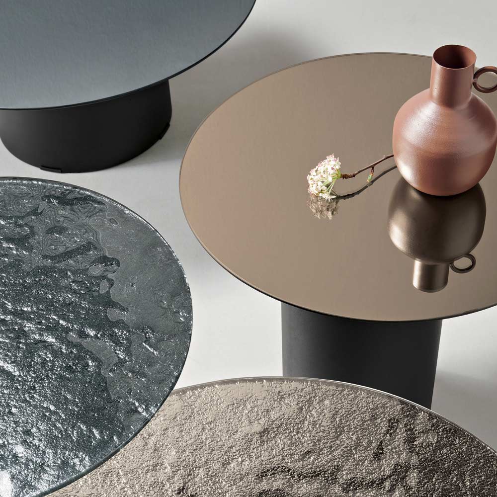 Couchtisch mit Metallgestell und Ø45 cm Spiegel- oder Glasplatte - Flaminia