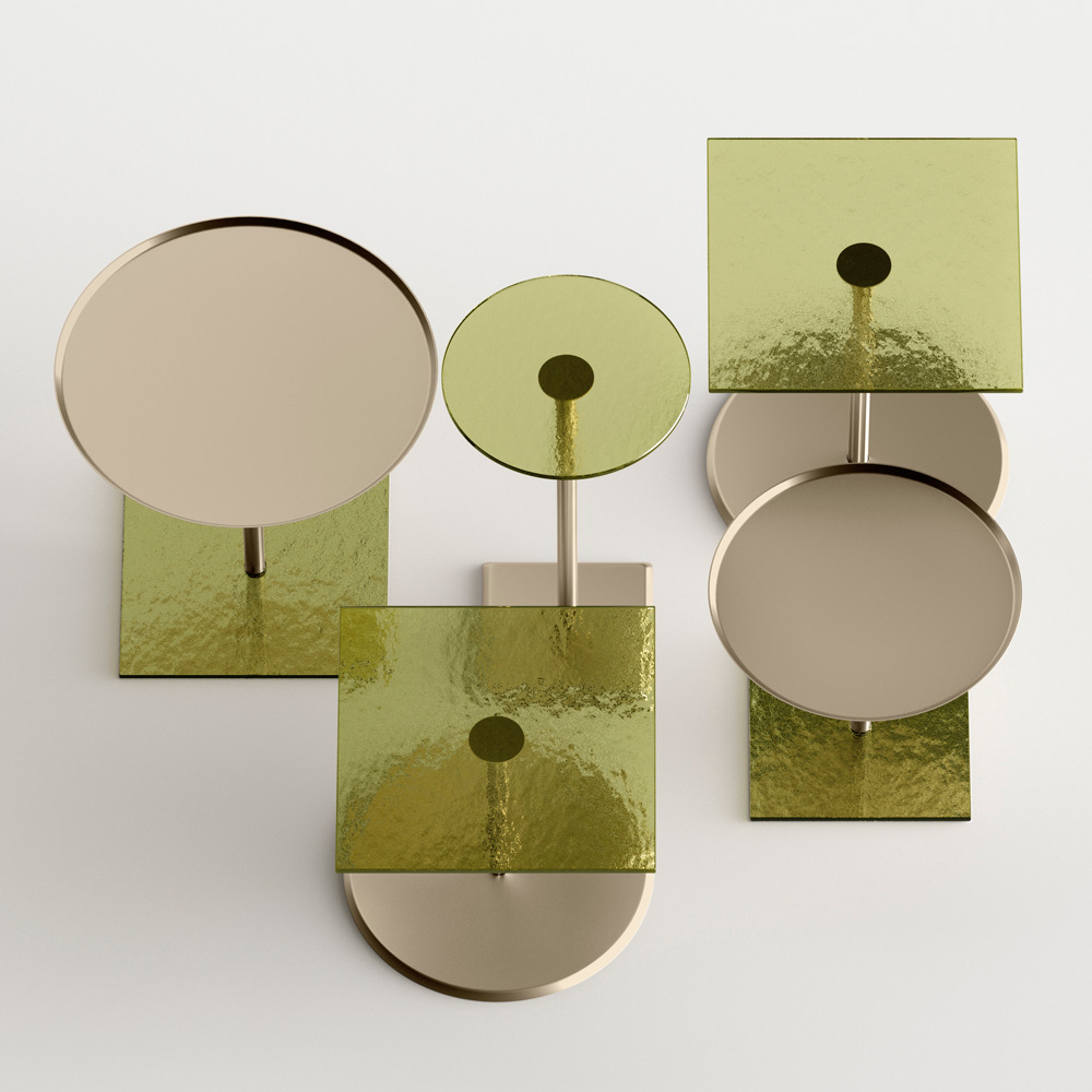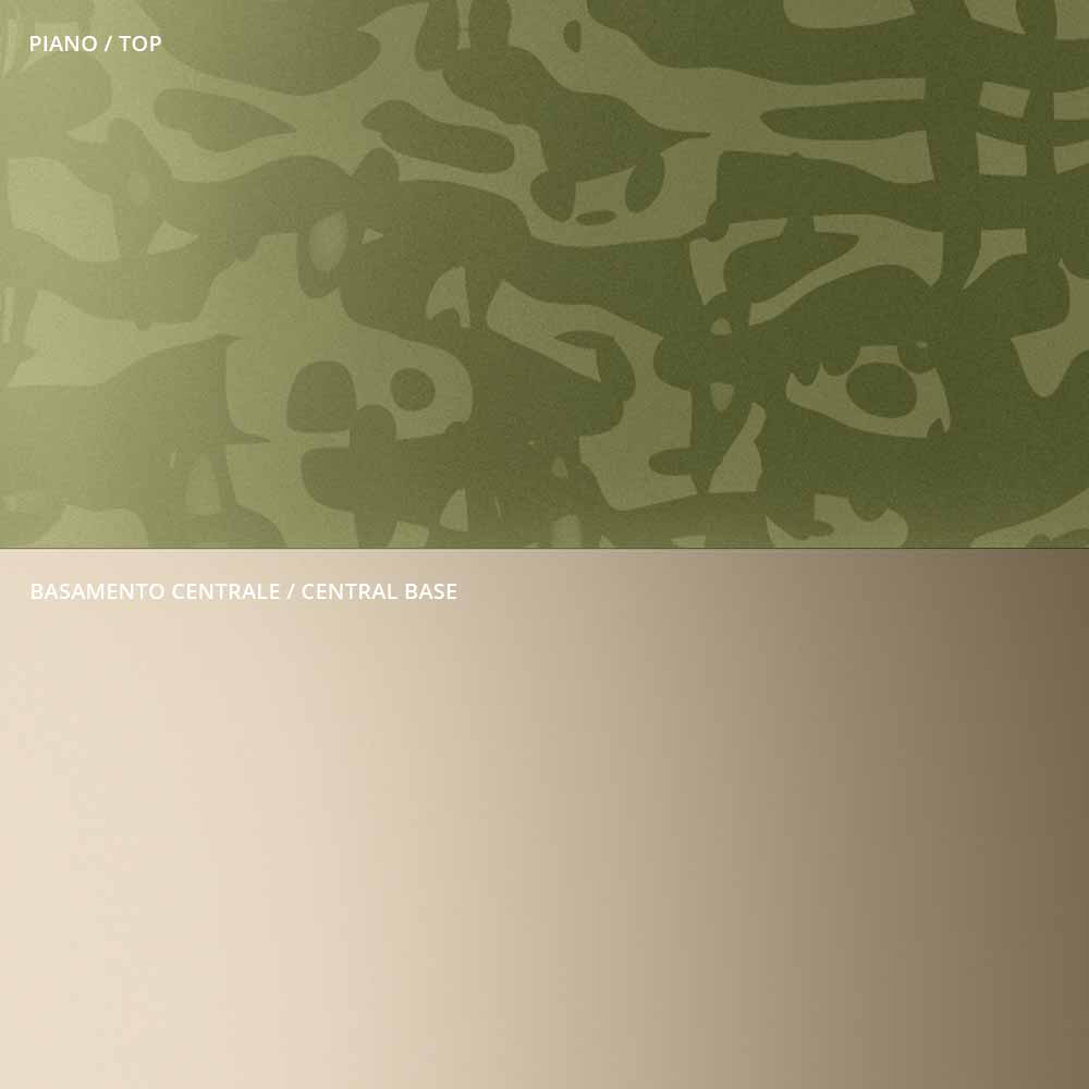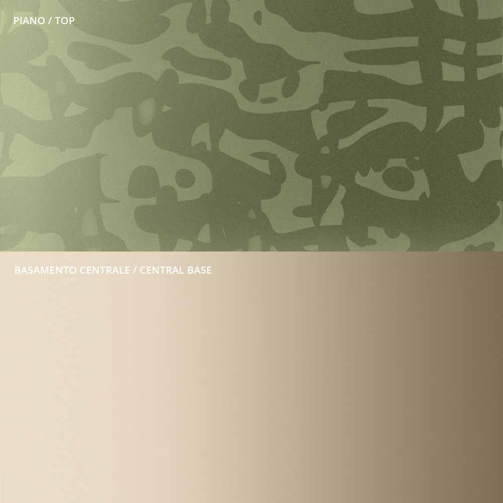 - Tischplatte aus geschmolzenem Salbeigrün und Sockel aus champagnerfarbenem Metall