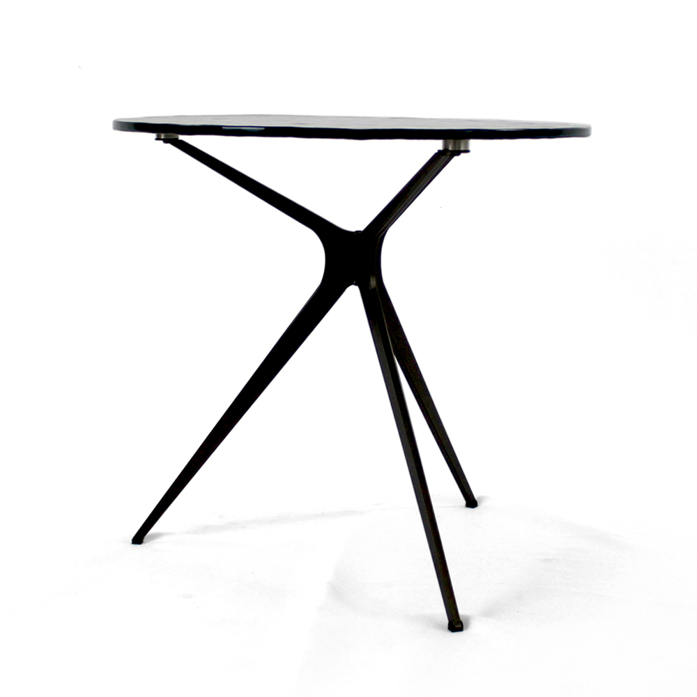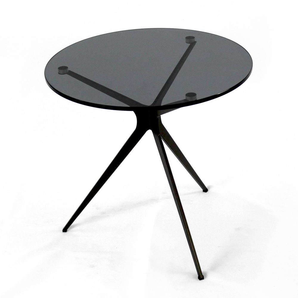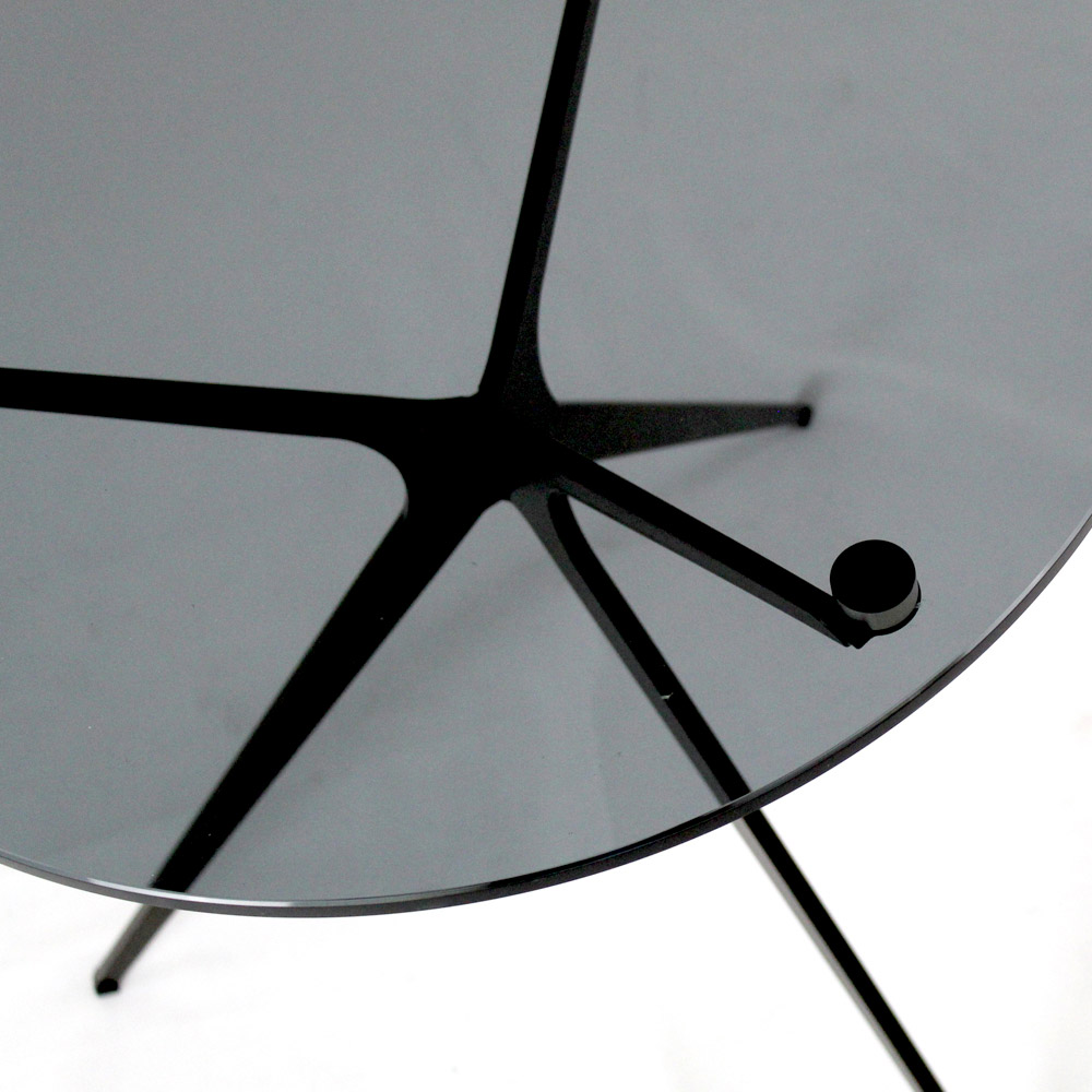 Couchtisch mit runder Glasplatte und 3 Beinen, hergestellt in Italien – Siste