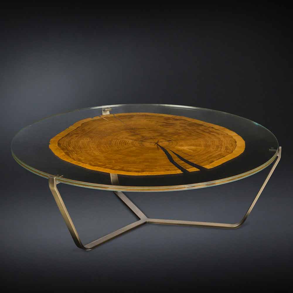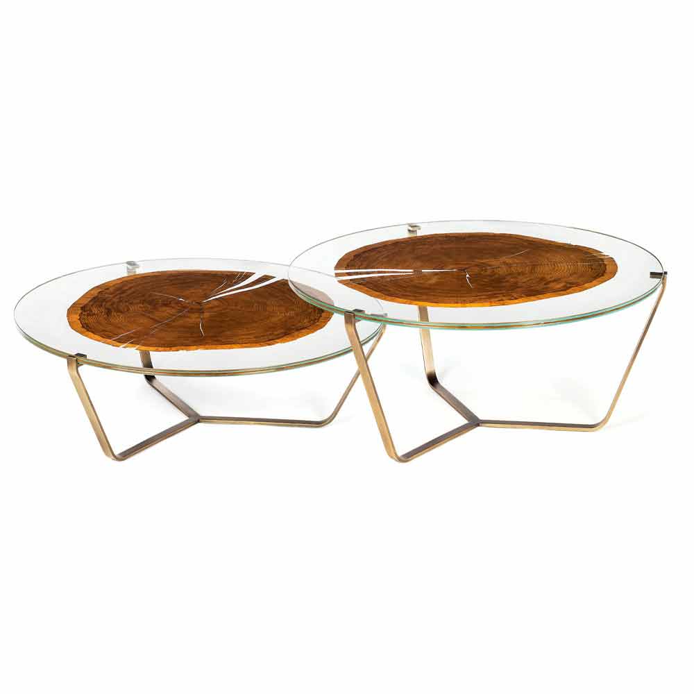 Runder Couchtisch aus Glas und Holz made in Italy, fein.