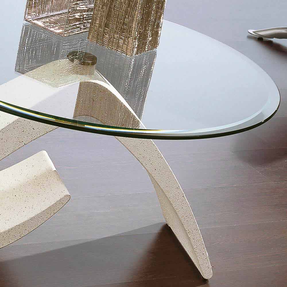 In Italien hergestellter Couchtisch mit runder Platte aus abgeschrägtem transparentem Glas und Sockel aus Mineralmarmor , einem Material, das durch Mischen von Marmorpulver gewonnen wird. Ein exklusives und elegantes Design zeichnet dieses Möbelstück mit einer stark raffinierten Persönlichkeit aus, das sich ideal für die Einrichtung jedes häuslichen Wohnraums mit Charakter eignet und ihm einen avantgardistischen Touch verleiht. Dank der Verwendung hochwertiger Rohstoffe und der Verarbeitung zu 100 % Made in Italy entsteht ein kostbarer und wertvoller Couchtisch, der sich durch Eleganz und Kreativität in den Formen auszeichnet. Der Sockel aus Mineralmarmor verleiht dem Couchtisch eine hervorragende Solidität und Robustheit und verleiht der Ästhetik einen starken modernen Stil. Seine besondere Form, die durch einfache geometrische Linien gekennzeichnet ist, schafft eine wunderbare Harmonie mit der weichen Form der Glasplatte und verleiht dem Produktdesign eine exklusive Ästhetik.