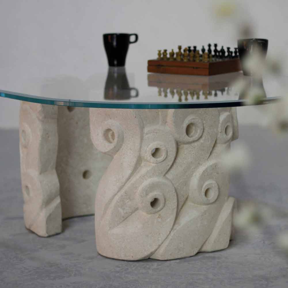 Couchtisch oval aus Stein und Kristall in modernem Design Lindos